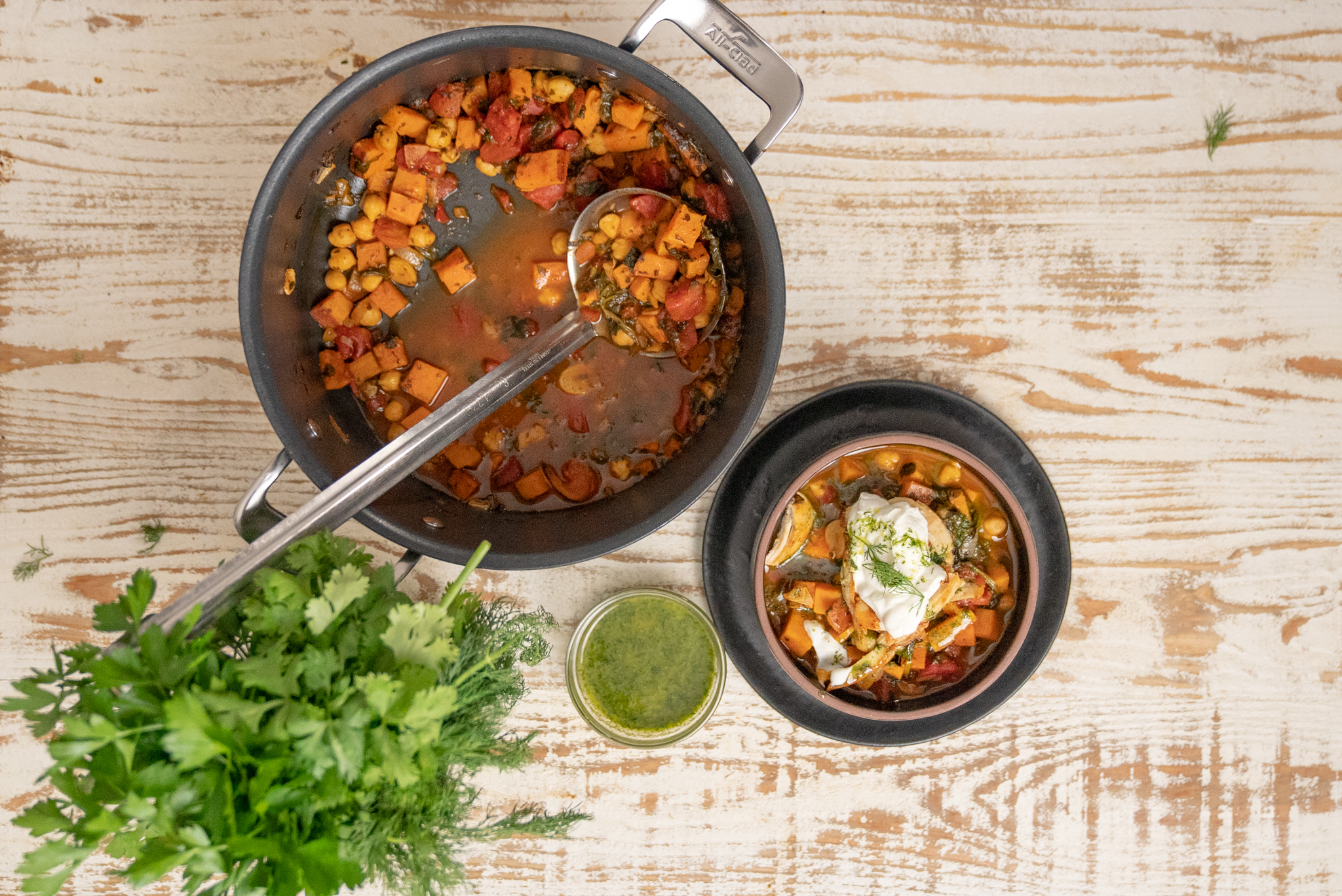 Winter is upon us. So tell me, what’s better than a warm and comforting stew, especially after a long workout? For this recipe, we are making a rich stew that can be made without the chicken being if you are a vegetarian. This dish is rich in carbs and protein: the perfect combo for a post-workout meal!